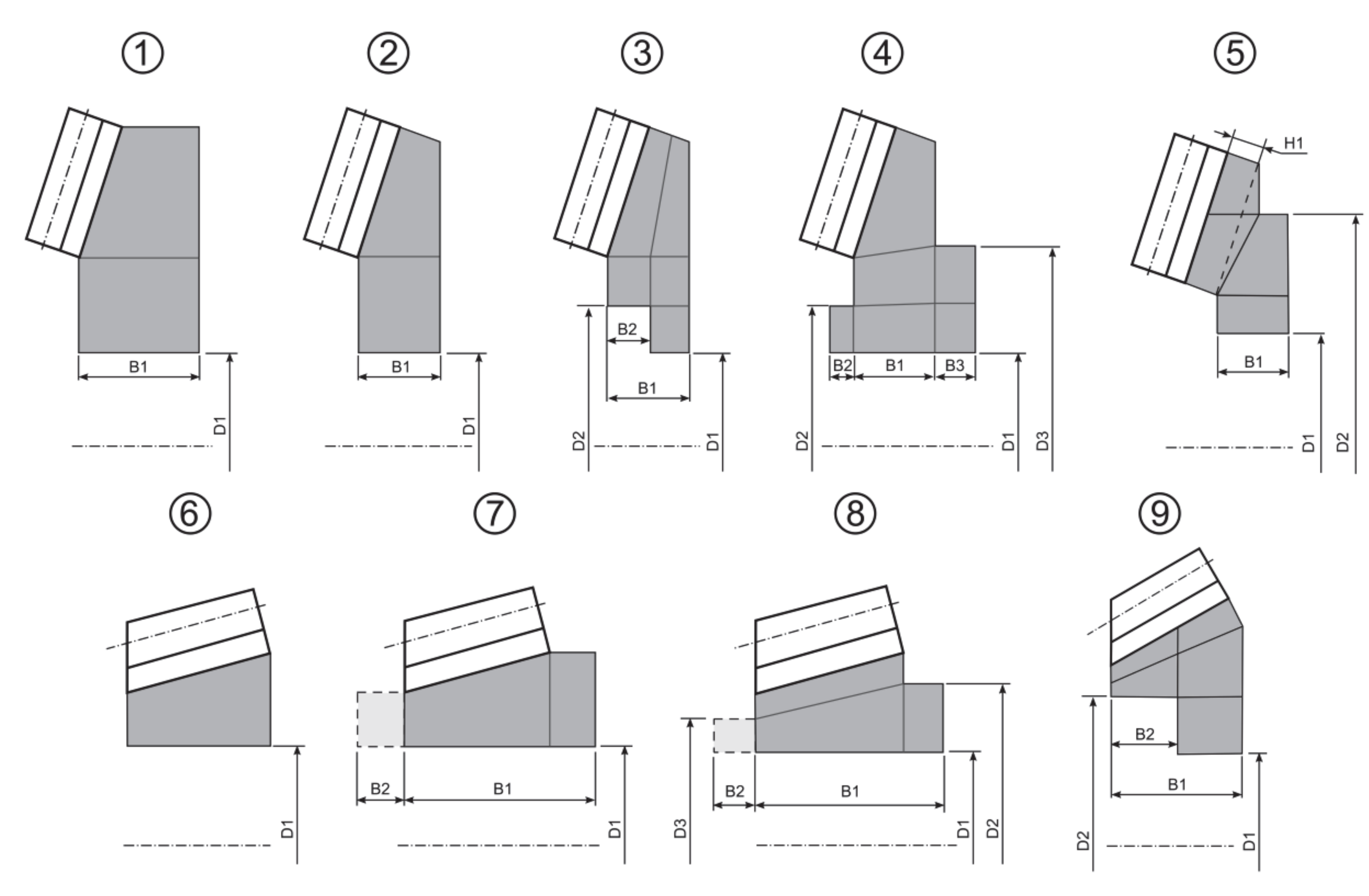 | Variants 1 - 5 | suitable for typical bevel gear geometries |